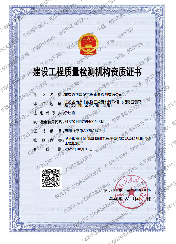 南京方正建設工程質(zhì)量檢測有限公司是1989年省建設廳批準成立的具有獨立法人資格的專業(yè)工程質(zhì)量鑒定及檢測機構,具有中國合格評定國家認可委員會實驗室認可CNAS資質(zhì)、省建設廳核準的見證取樣類檢測、專項類檢測及備案類檢測資質(zhì),省質(zhì)量技術監(jiān)督局資質(zhì)認定CMA資質(zhì),省地理測繪信息局測繪資質(zhì),被省建設廳評為2010年度、2011年度、2012年度A級信用等級單位,是入選《全省中小學校舍安全工程抗震鑒定機構名錄》的鑒定機構, 是入選江蘇省人民法院委托鑒定機構電子信息平臺的鑒定機構...